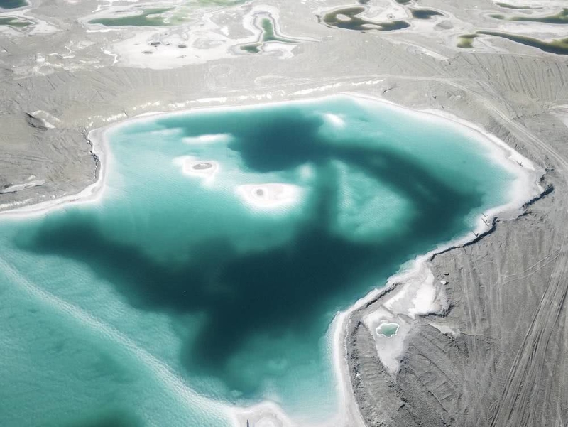 翡翠湖位于青海省海西蒙古族藏族自治州原大柴旦化工厂盐湖采矿区内,距离茶卡盐湖大概五个小时的车程。这里其实是一个企业的盐矿工地,因为湖中盛产硼、锂、盐、钾肥、芒硝等元素,是所以使得湖水呈现出碧绿、宝蓝、琥珀黄的颜色。