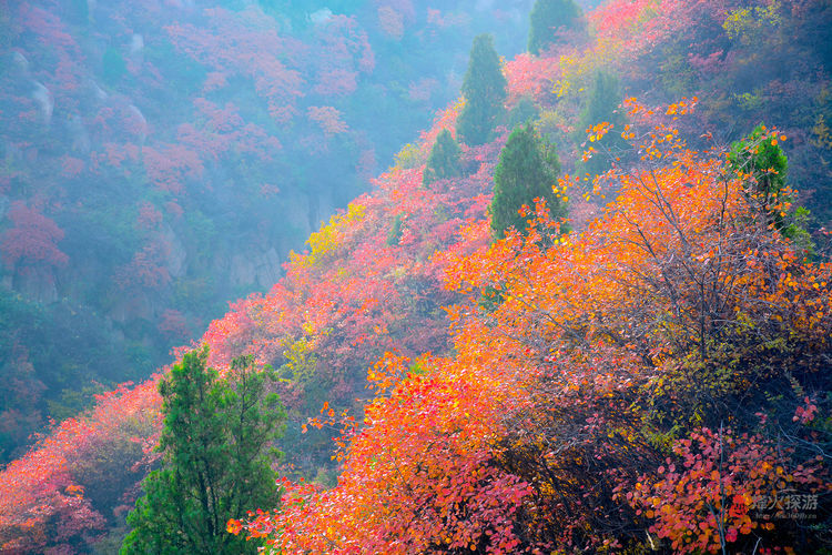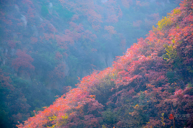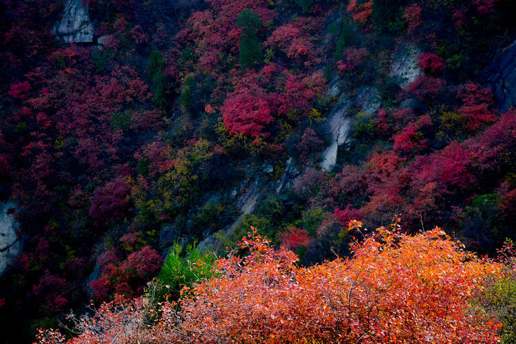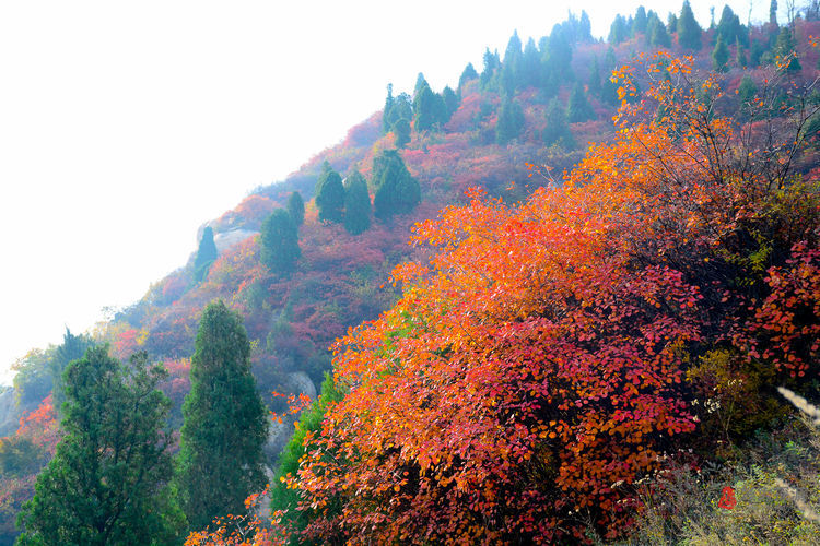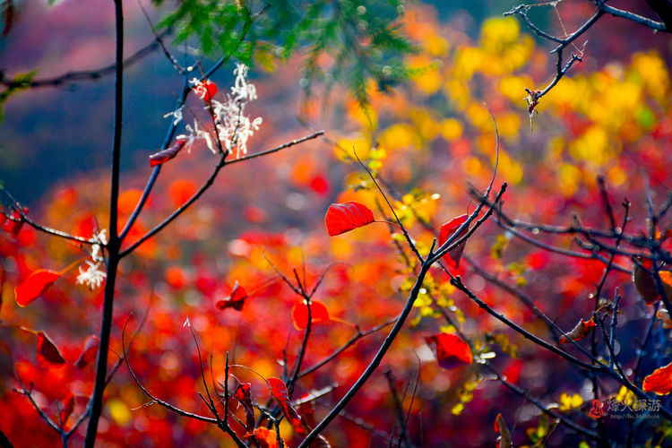 红叶,红得似火,红得似血,你把秋天的激情点燃,你把秋天的激情礼赞,是你染红了秋色,是你给了我秋天的遐想,当我遥望无边的红叶被落日照耀得如同燃烧的火焰时,我的心醉了,醉得全身的鲜血都在沸腾激荡。