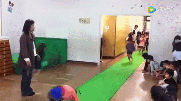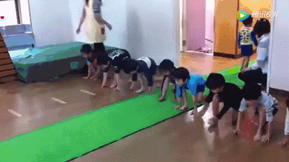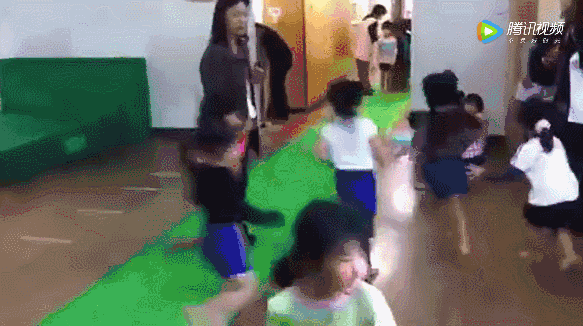 小朋友一个个生龙活虎,跑动翻滚,一切井然有序。