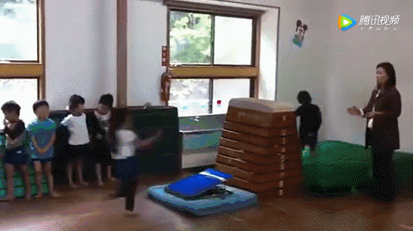 项目三是跳马,垒的比自身还高的箱子小孩子们动作流畅,毫无迟疑,一跃而过。