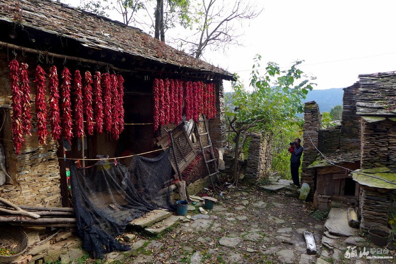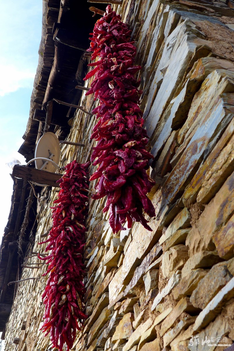 石板做墙,石板当瓦,连门楼也是石板砌成的。这儿的几十处石板房除了房檩是木头以外,全部是由石板建成的,完全是石板的王国。连接各个石板房的石板路绕房子而过,石板路错综复杂,宛如迷宫。