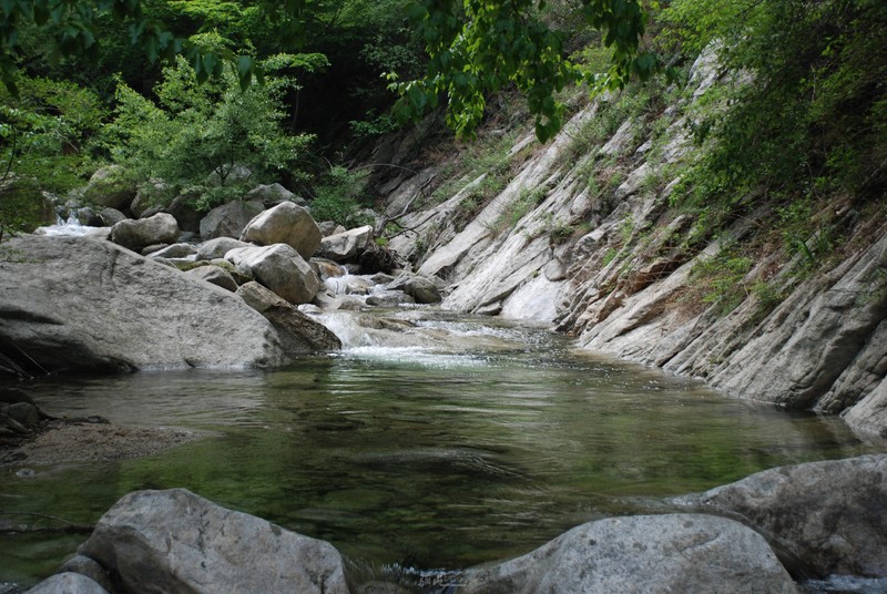 2010年5月15日。筹划已久的“金岩沟”徒步观景活动,终于成行!金岩沟位于华阴市华阳镇付家村,据临潼102公里(GPS导航测算)。因山峰岩石在阳光照射下呈现淡金色,河水清澈透明;不同河段水色变换不同......(此处省略优美华丽的形容10000字)故又被称为“金岩秀水”。