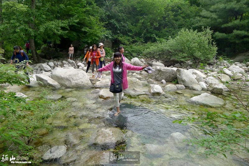 由于前几天下雨,导致河水上涨。几乎每个过河的地方水面都漫过了垫脚的石头,所以所有队员全部失足(湿足)、失身的没有发现!(嘿嘿...... )尤其是“吃鱼不说话”更是首当其冲,在经过第一水时就勇敢的身先失足了!由于我在后面收尾,具体失足原因不详?忘知情者回帖、灌水时告知为感!