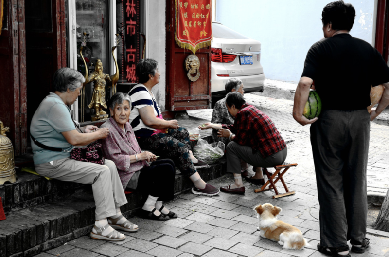漫步在榆林古城,你会遇到纳凉的人们,三五成群的寻个阴凉地坐着,拉着家常或是玩着纸牌;