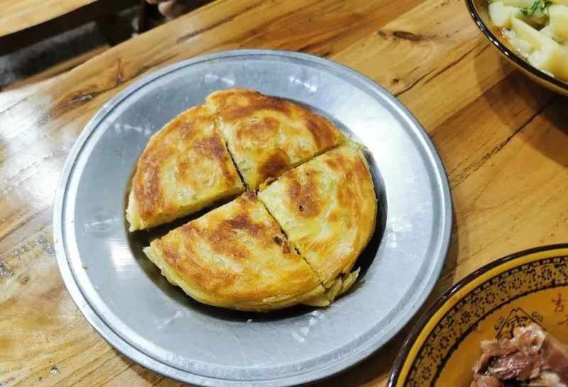 绥德油旋,有点像常见的酥饼。色泽金黄油亮,层层饼旋薄如羽翼,外脆酥里绵软,一口下去,咸鲜扑鼻。
