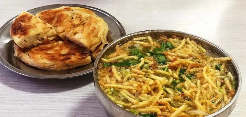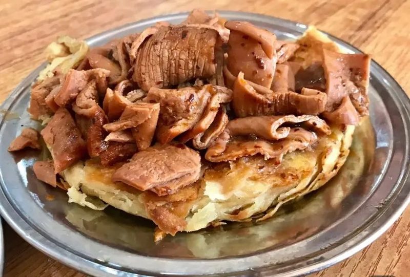 榆林人吃油旋,常和羊杂碎搭配在一起。掰一块油旋饼,泡在杂碎汤里,别提多美味了!