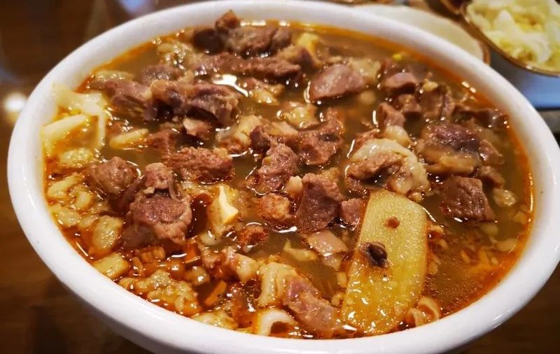 羊杂碎,也就是由脑、血、肝、心、肠、肚等混合烩制而成,为了追求口感,有些杂碎中还会加入羊蹄。