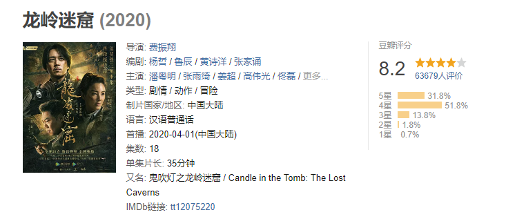 开播之后,全网热度和讨论度空降第一名,豆瓣评分更是创《鬼吹灯》系列最高,足以见得整部剧的品质之高。