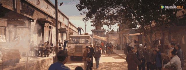 再看看这行李放到车顶的汽车、路旁充满年代感的商店、供销社,真实还原了那个年代的日常。