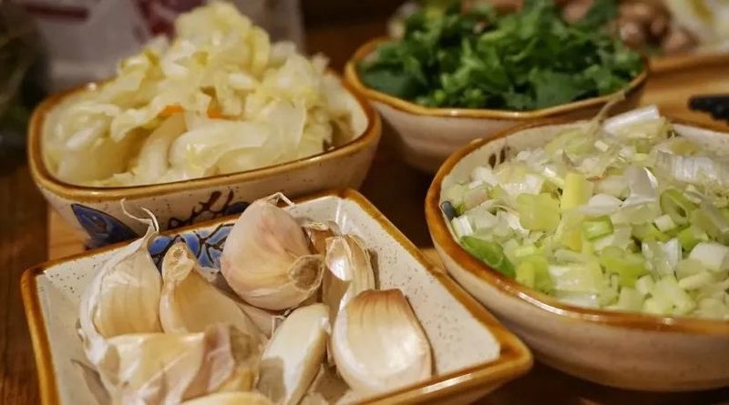 除了肉类,素食材料也很丰富养眼,有炸洋芋、片粉、鸡蛋皮、菠菜、木耳、海带丝、黄花菜等,制作工艺复杂繁重。