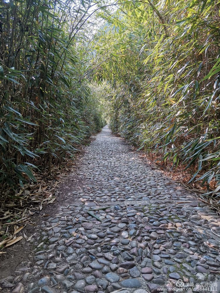 过了小桥来到著名的竹林幽谷“熊猫走廊”。我们沿着湑水河岸边的小道,一边走一边欣赏着两边茂密的箭竹林和丰盛的草木,一个个竭力地向竹林深处翘望,期盼能有幸偶遇到野生的国宝大熊猫。