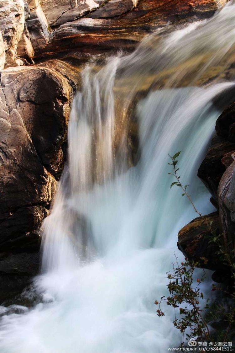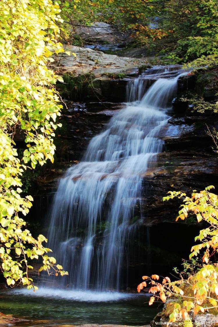 回头看去,河水像七彩的绸缎一样铺在河底。只是在纵身而下时才露出本身的清白。一旦到了平缓处,一汪汪清潭就似翡翠一般。 一路上,这样的小瀑布,很多很多,翡翠一般的清潭也一个接着一个,就像姑娘口中的山歌,随行随吟,源源不绝。以前去过黄果树,看过壶口,也去过九寨沟,那些大瀑布,或因高度使人拍栏叫绝,或因水量令人叹为观止,但只有黄柏塬的瀑布,不施粉黛,不加雕饰,像山里人家的小家碧玉。
