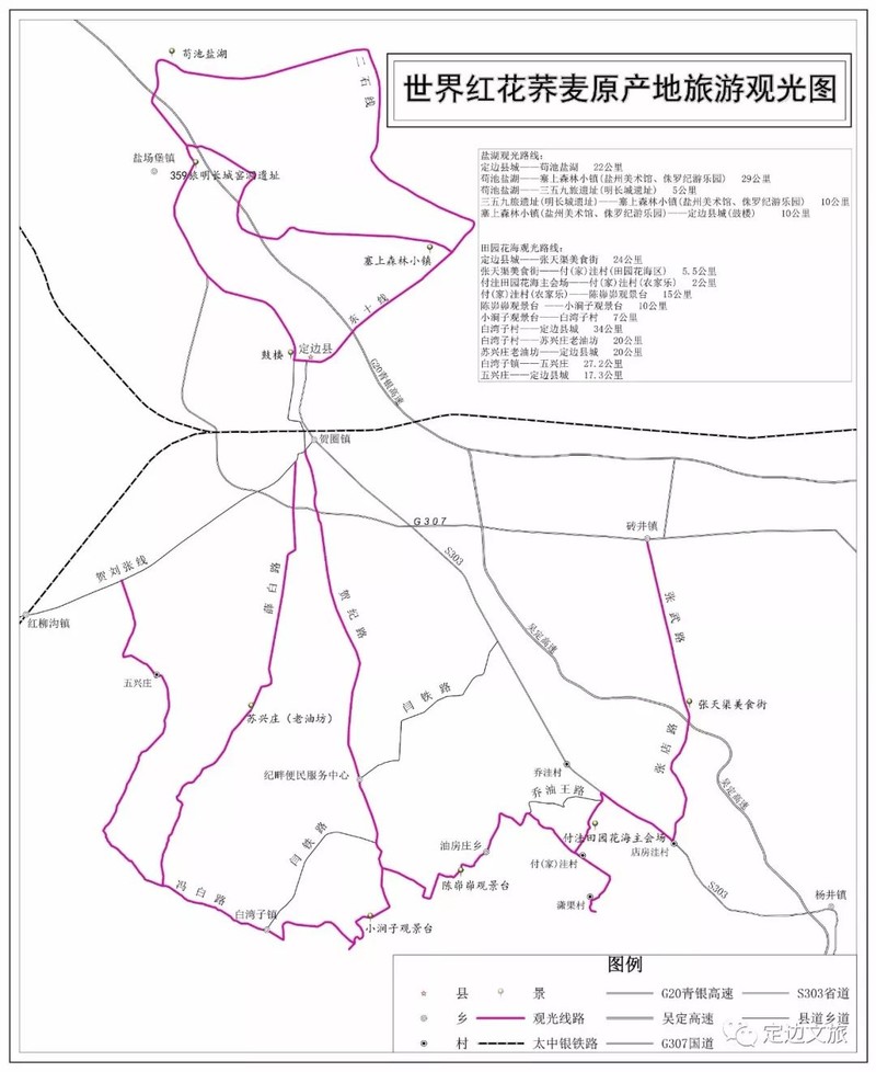 吾地 ▏给边塞以怀念,给旅程以终点又是一年八月又是小城定边荞麦花开最艳的时候我想邀您来做客开始一段走三边、看花海,游千年盐湖、探塞上古堡的梦幻旅行!线路篇点击保存线路图,更方便!花海线路定边县城——西环路——定红路——新307国道——薛白路(苏兴庄)——冯白路(白湾子镇)——小涧子观景台——陈峁峁观景台——油房庄乡——付洼主会场——张店路(张天渠)——张武路(砖井镇)——定边县城——盐湖线路。盐湖线路01第一站359旅打盐窑洞旧址。02第二站苟池盐湖。美景篇走三边,看花海每年八、九月,正是定边一年中风光最美的季节,这时荞麦花、油菜花、洋芋花、胡麻花、向日葵花竞相开放、争奇斗艳,红的、黄的、白的、粉的、紫的、绿的五颜六色、异彩纷呈,起伏跌宕,连绵百里,形成万亩花海。一个个梁塬涧台之上,窑洞人家、风车井架、烽台古堡,在蓝天白云的映衬下,呈现出一幅幅五彩缤纷的瑰丽画卷,令人目不暇接,流连忘返。左右滑动看更多照片哦!游千年盐湖大自然仿佛一位技艺卓绝的画师用它手中的调色板将千百种颜料倾倒于盐湖铺陈在北方的高天厚土之间而在傍晚或阴雨天大部分的盐田会静静地敛成一种淡紫粉色许是夕阳斜照时倒影如画许是雨滴落下时涟漪阵阵又许是层云漫卷时遗鸥立水左右滑动看更多照片哦!探塞上古堡500年岁月转瞬即逝明长城存留断断续续,走向渐渐模糊但仍留下了许多可供探索游览怀念凭吊的古堡、墩台和墙体他们残缺之透着雄浑沧桑里阅尽历史活动篇第三届定边红花荞麦文化旅游节01启动仪式及文艺汇演时 间:2019年8月18日-22日地 点:定边县油房庄乡付洼主会场内 容:听腻了流行音乐,看厌了动感舞蹈,不如一起去看非遗传承人的表演,进行一场与民歌、陕北说书、秧歌、道情皮影、秦腔、霸王鞭舞的约会吧。02主题露营活动时 间:2019年8月18日—10月18日地 点:杨井镇潇渠村、白湾子镇大涧子村、纪畔苏兴庄村、纪畔上沙渠村。内 容:找一个周末,约上三五好友,陪着老人,带上爱人孩子,到野外吃烧烤、喝啤酒、畅聊人生,闲不住的男孩儿捉迷藏,爱美的女孩儿采野花,当夜深人静,万物睡去,野营帐篷里与白于山同眠好梦,如果你愿意在日出时醒来,定会看到不曾见过的美。3慢跑、骑行、汽车与摩托车巡游等活动时 间:2019年8月17—9月18日地 点:县城、苟池盐湖、花海内 容:我们慢跑骑行,倡导“保护生态、低碳节能、绿色出行”的健康生活理念;我们相约自驾,驱车走走停停,来一场花海公路之行。04美食和旅游商品展销活动时 间:2019年8月18日—10月18日地 点:张天渠、店房洼、付洼、潇渠、上沙渠、大涧子、苏兴庄、五兴庄内 容:设立定边美食小广场,集中展示定边系列美食,如:大块羊肉、饸饹、剁荞面、凉粉、酿皮、碗托、羊羔肉等;组织旅游商品展销活动,推广定边特色旅游商品,如:荞麦加工系列产品、马铃薯加工系列产品、炉馍馍、胡麻油、乳制品、盐化产品等。大块羊肉凉粉臊子饸烙烤土豆酿皮炉馍馍不论是东边或西边还是南边或北边最美还是我的定边策划:王廷奎编辑:梁小宁、田崇安、柳婷婷图片:定边摄影家协会来源:定边文旅