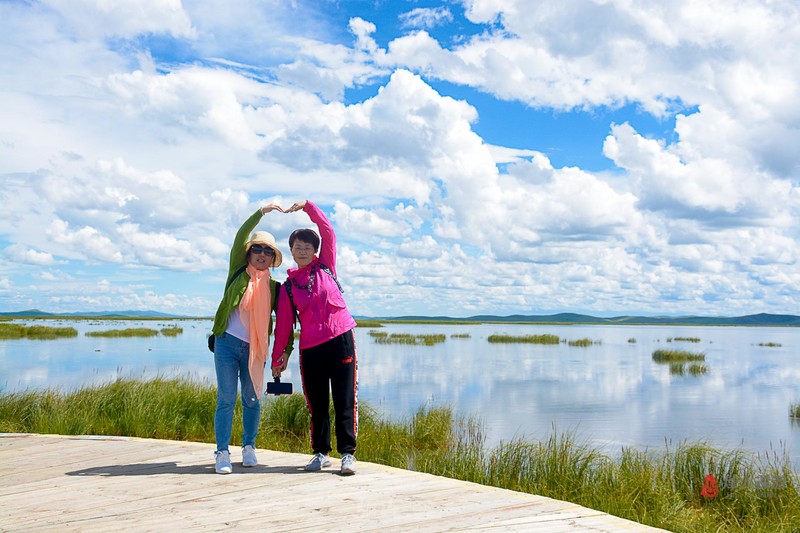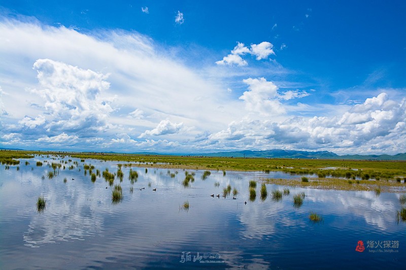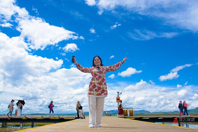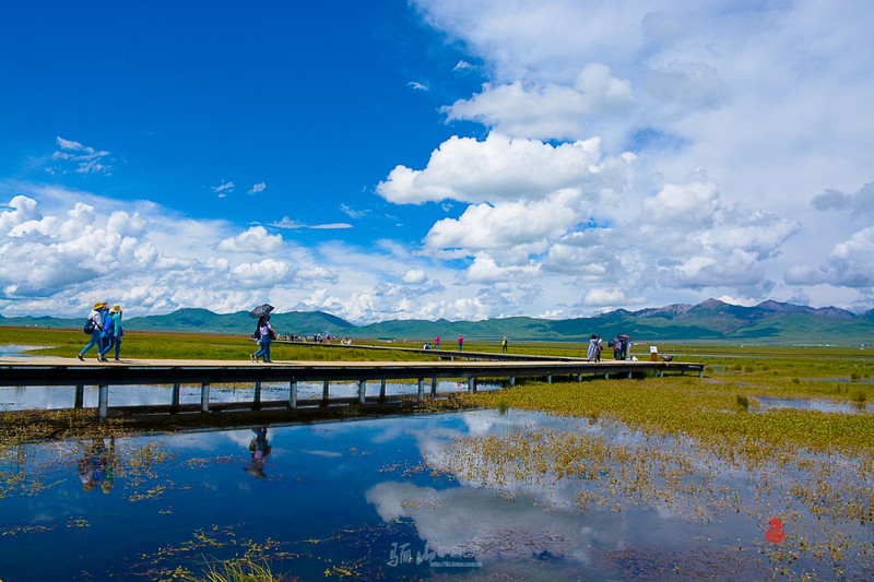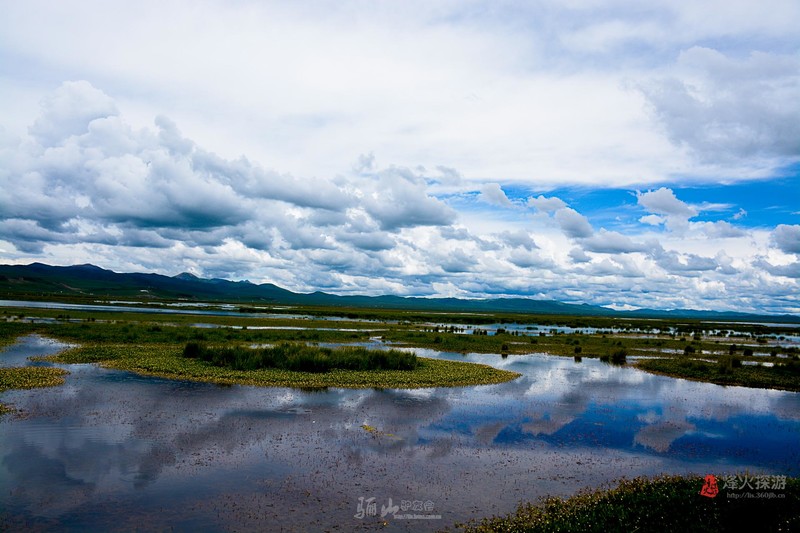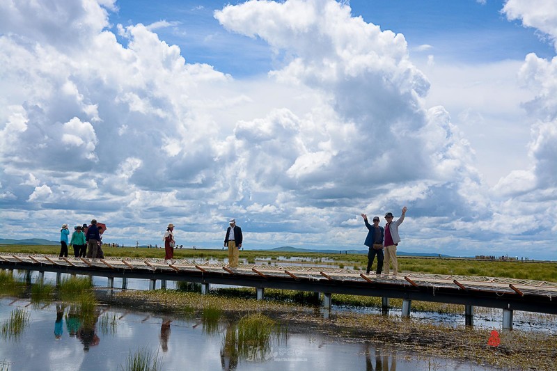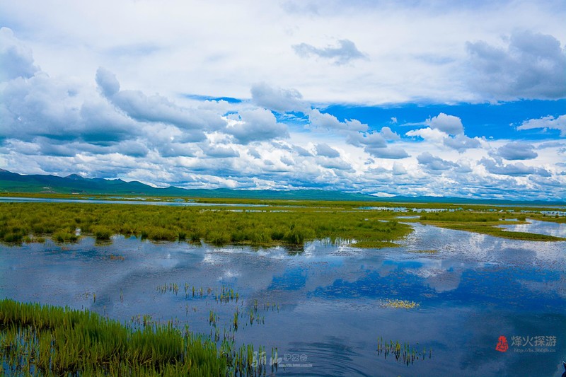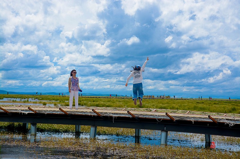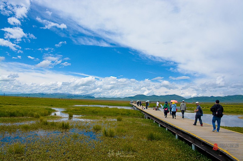 若尔盖湿地的著名高原湖泊——花湖,花湖因初夏6月水中开满五彩缤纷的花朵而得名,黑颈鹤就栖息于此,这里被称做中国最美的国家湿地草原。游玩结束后宿若尔盖县。