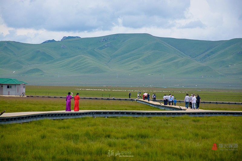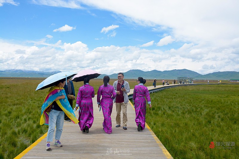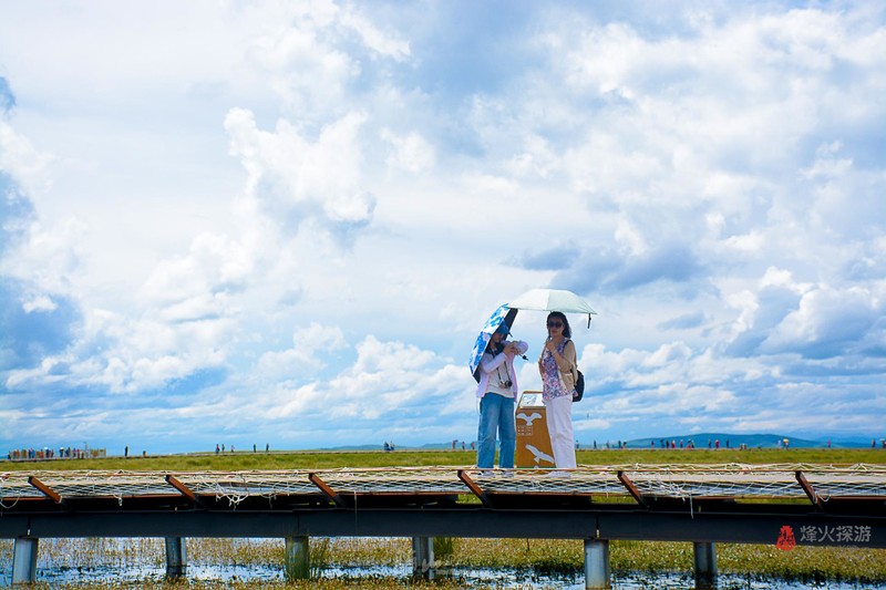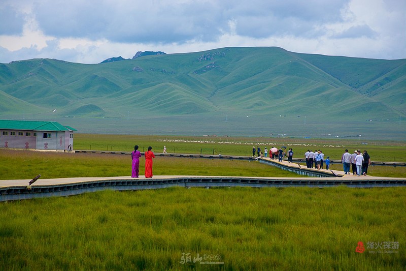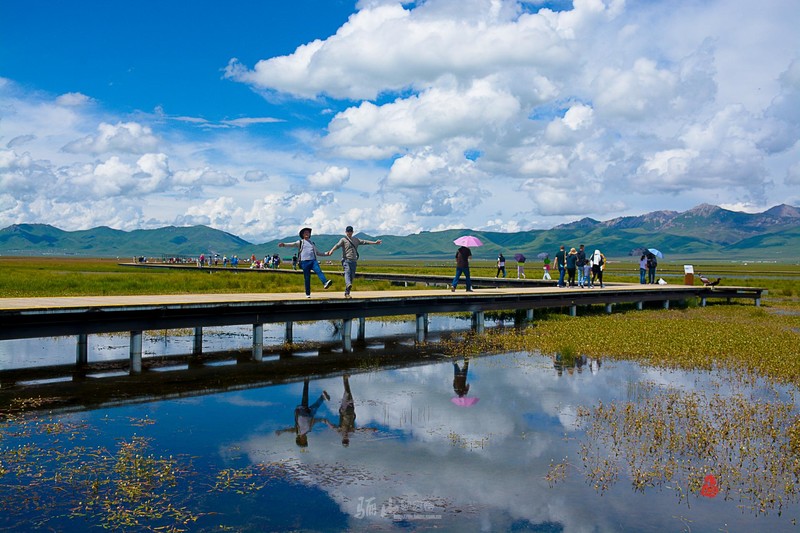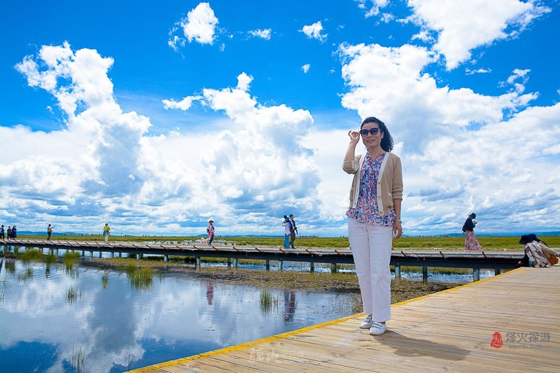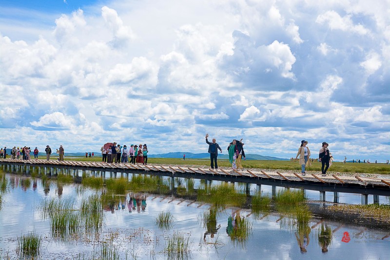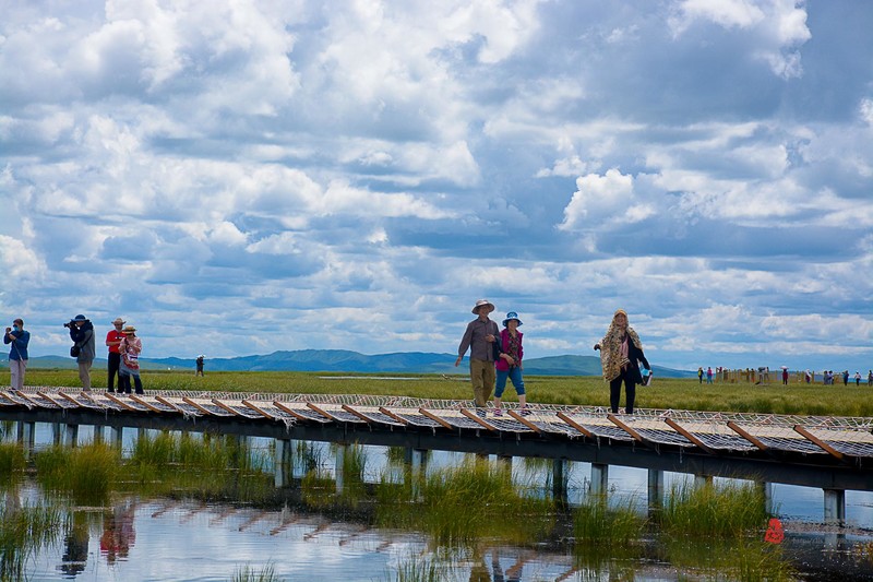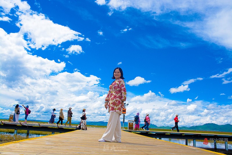 若尔盖湿地的著名高原湖泊——花湖,花湖因初夏6月水中开满五彩缤纷的花朵而得名,黑颈鹤就栖息于此,这里被称做中国最美的国家湿地草原。游玩结束后宿若尔盖县。