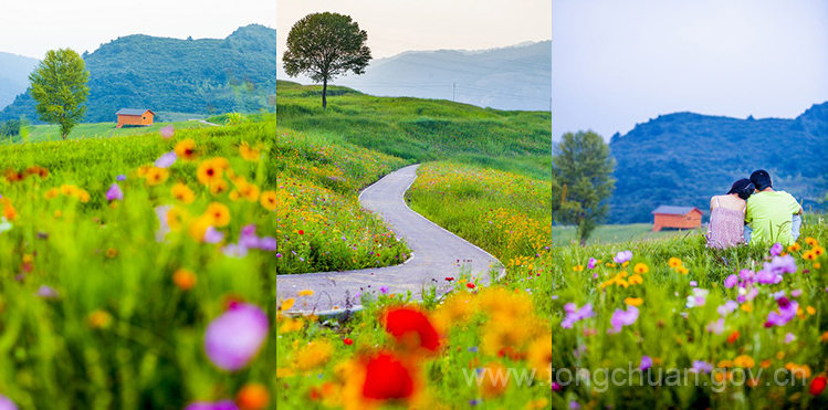 盛开的花儿像是彩色的光芒闪烁在片片青草之中,在清风的拂动下由近及远连成一片,明亮了整个照金。你来或不来,蓝天、清风、绿草、鲜花,他们就在这里,生活在自己的世界,不为你的驻足,只跟随心的方向,在最美的照金绽放!