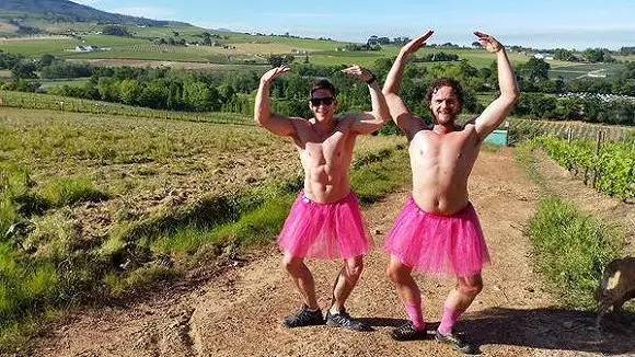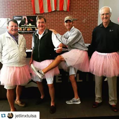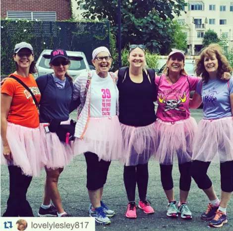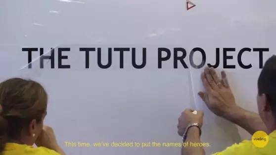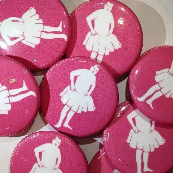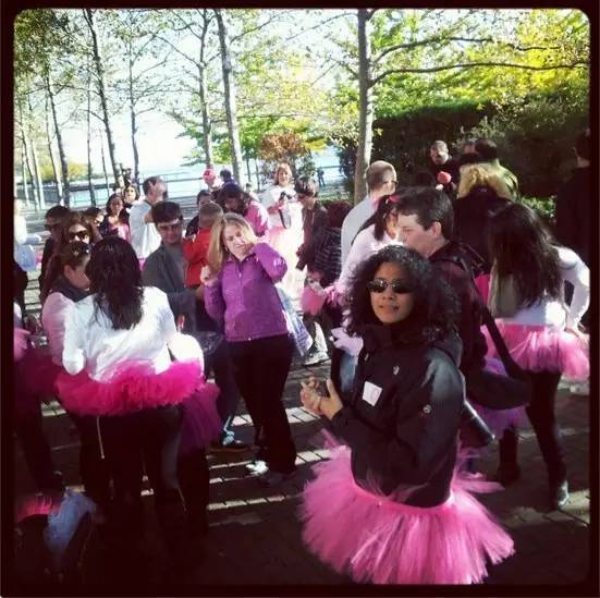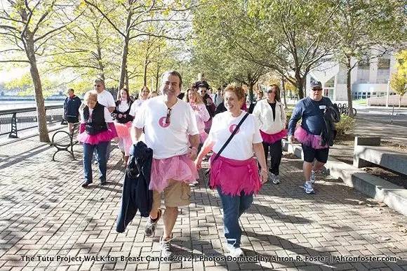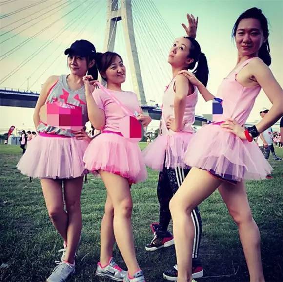 一群身穿粉色蓬蓬裙的男女老少浩浩荡荡: