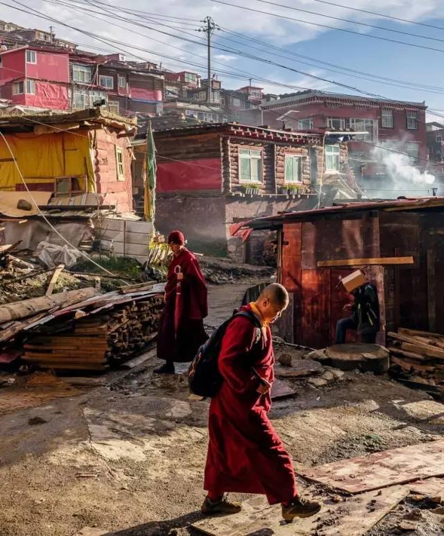 这些小屋每一间只有几平米大,两个房子之间只要有空隙,僧人们就会见缝插针的建自己的小屋,涂成褐红色。